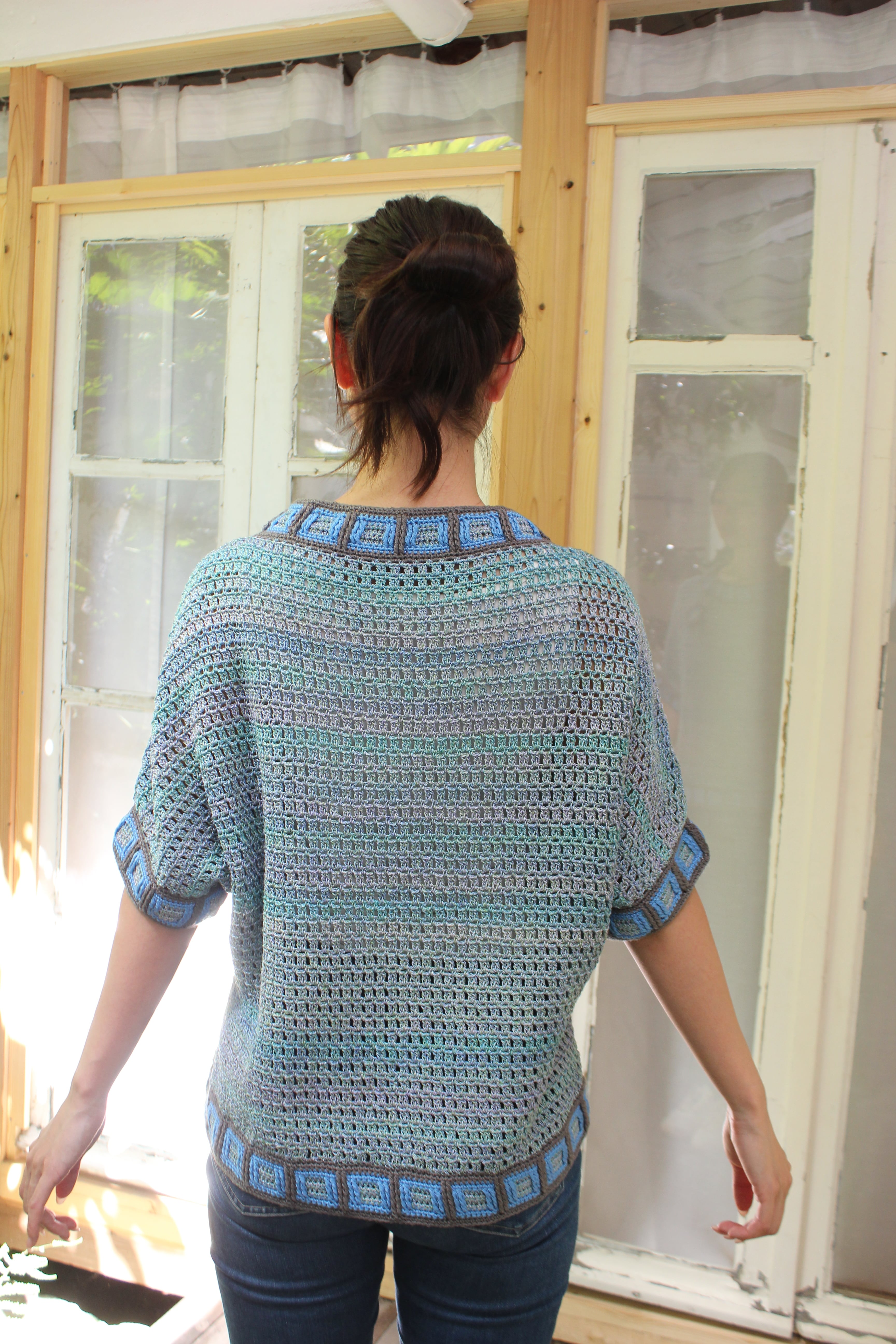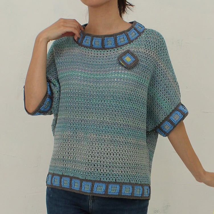 【1A80325】マーブルとさらいで編むオフスタンドカラーのドルマンプル(編み図付き)