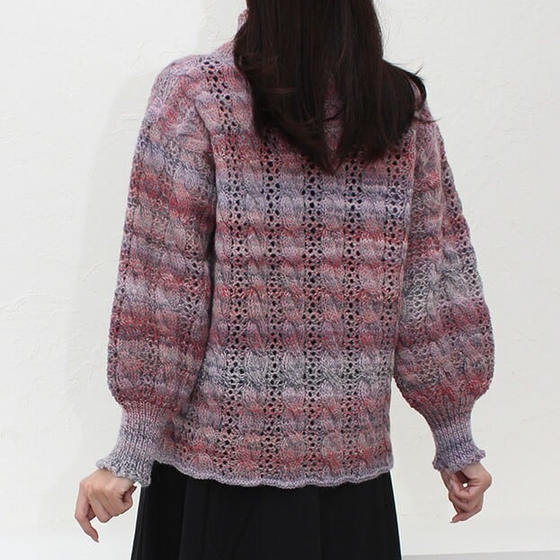 【1A10125】ツイスト10玉で編むプチフリル付き棒針編みプル (ツイスト10玉+編み図付き)