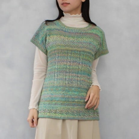 【1A10225】切り替え模様の棒針編みベスト 編み図ダウンロード
