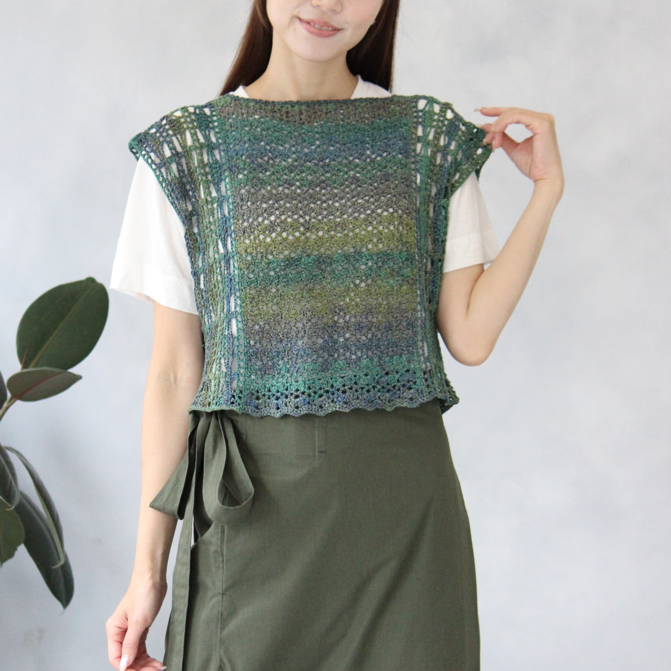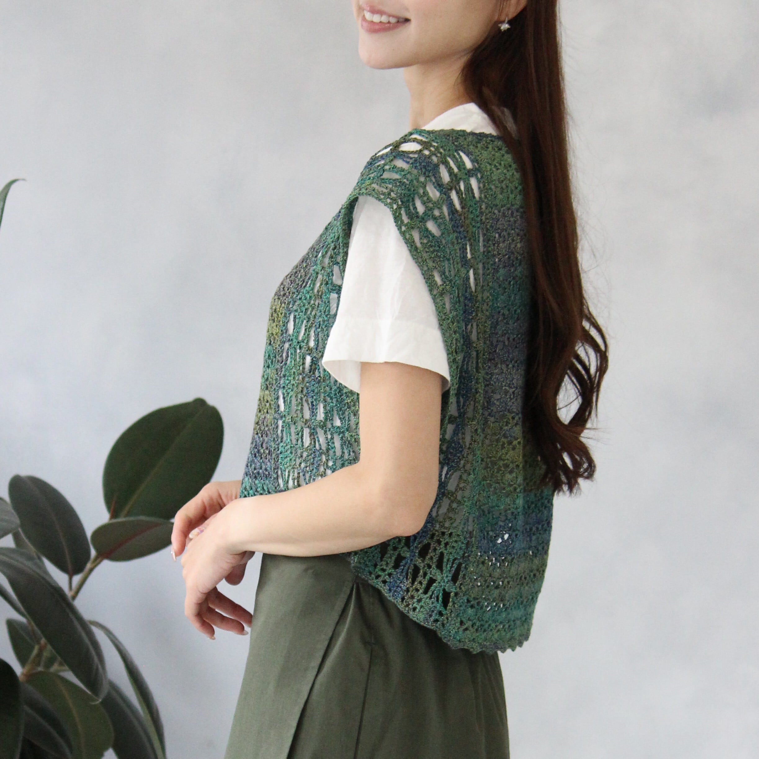 【1A80126】マーブル5玉で編む切り替え模様の段染めベスト(5玉+編み図付き)