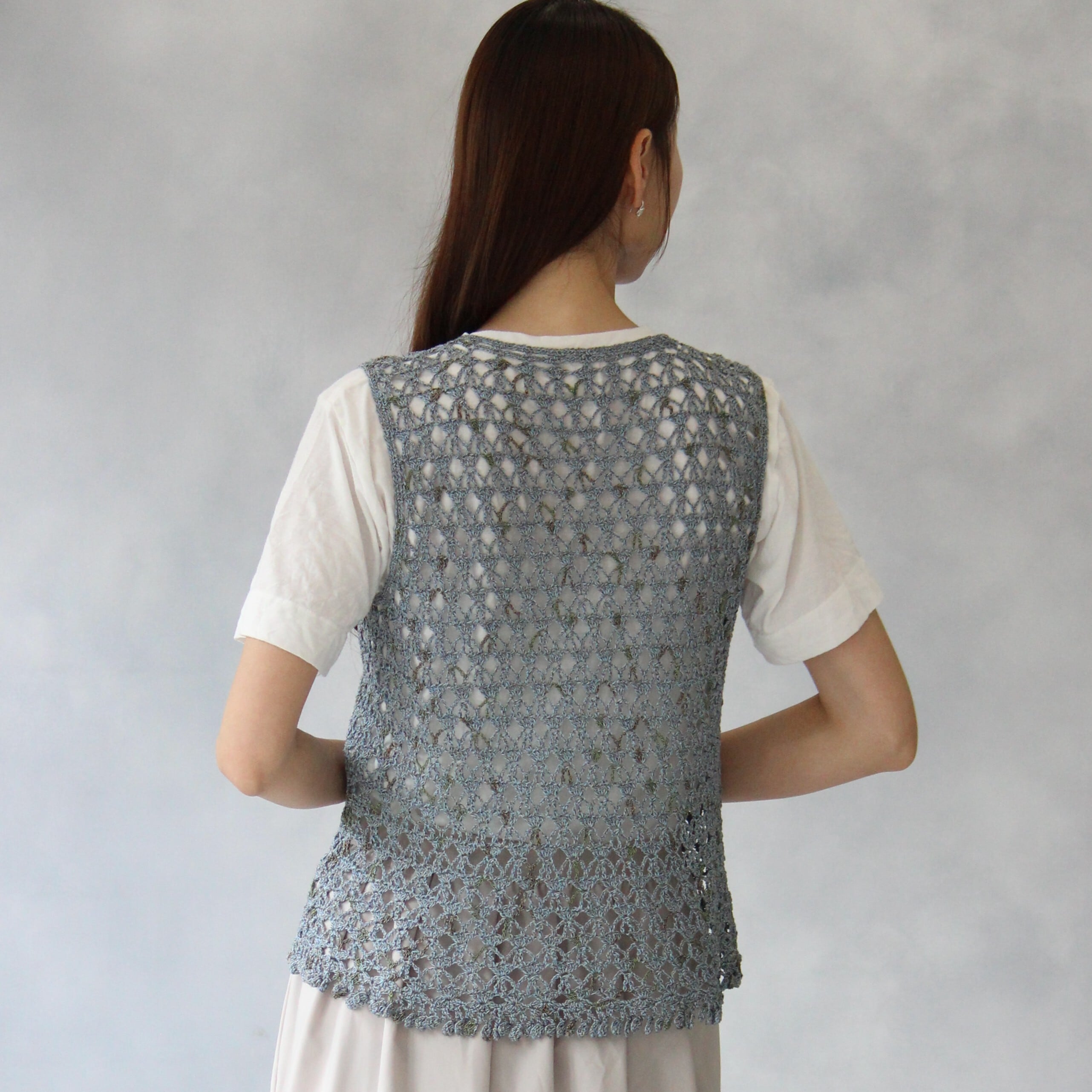 【1A80526】ランダムコードで編むアシンメトリーネックベスト【ランダムコード5玉+編み図付】