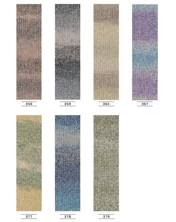 扁平のチューブ状の糸にナイロン糸をランダムに巻いたロングピッチの段染め糸です。横編にしても美しいグラデーションが味わえる編み心地の良いニッケビクター毛糸の夏の定番糸です。