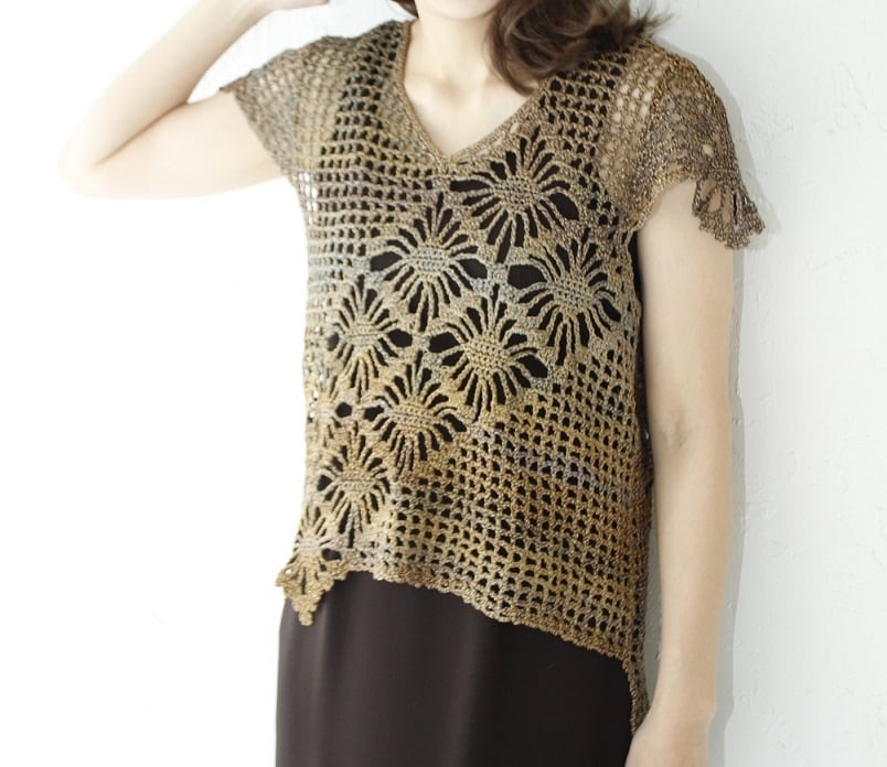 【1A8292】ノーブルで編むひし形模様のアシンメトリープル【ノーブル5玉+編み図付パック付】