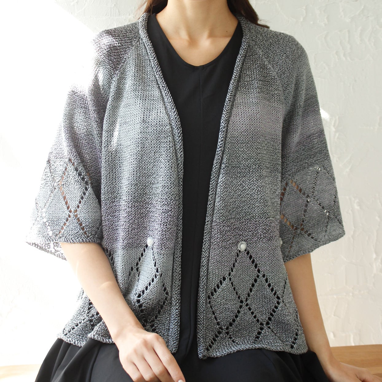 【1A8054】ノーブルで編むラグランスリーブのカーディガン【ノーブル7玉+編み図付パック付】