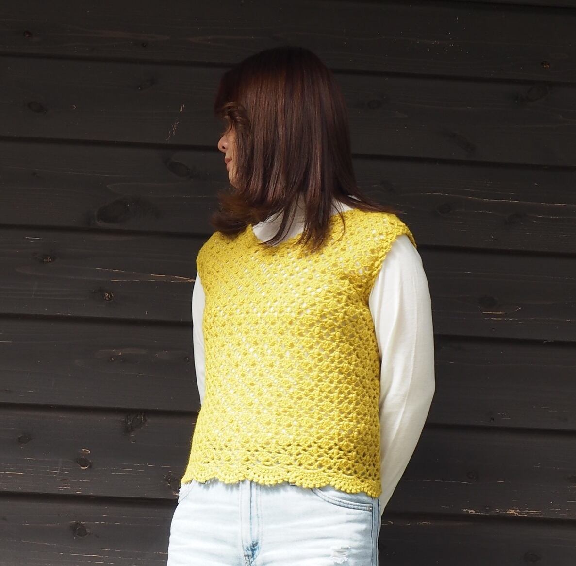 【2A10124】かぎ針編みレーシーベスト
